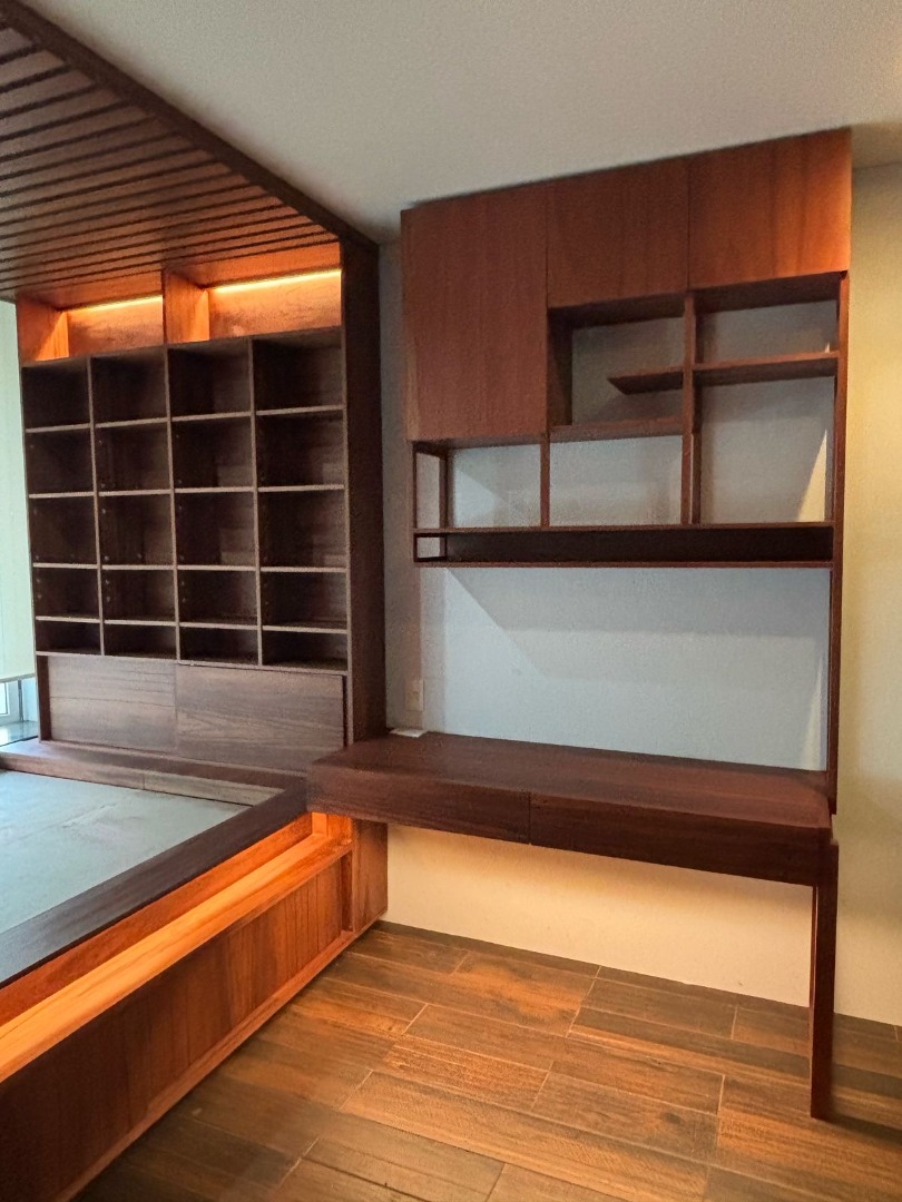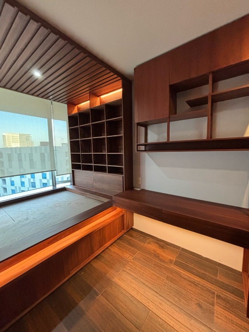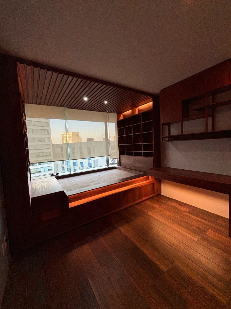 La incorporación de iluminación indirecta realza la textura natural de la madera y aporta una atmósfera elegante, funcional y acogedora. El resultado es un diseño atemporal que combina practicidad y sofisticación, pensado para inspirar cada día de estudio y descanso.